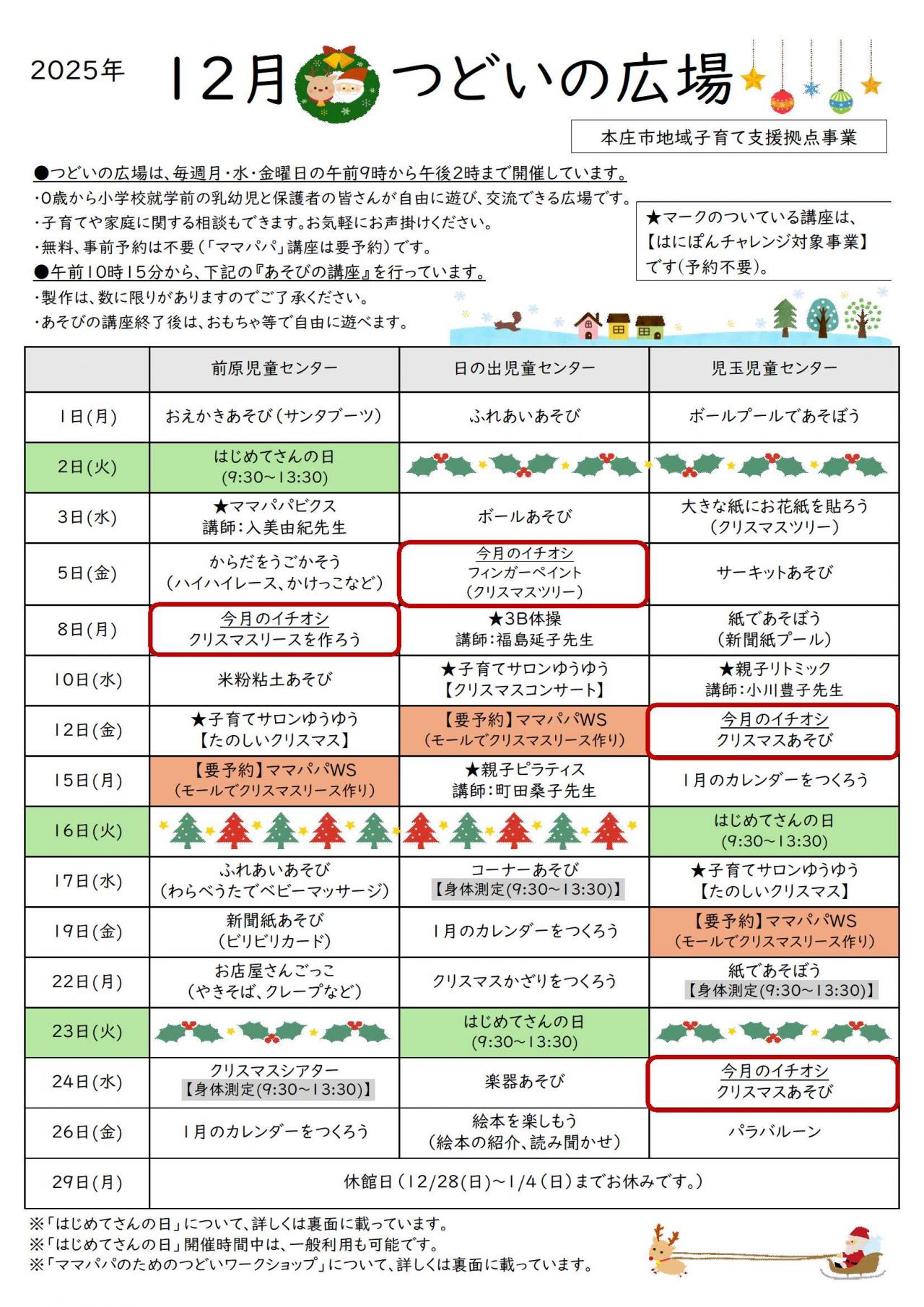 詳しくは「つどいの広場だより12月号」をご覧ください。