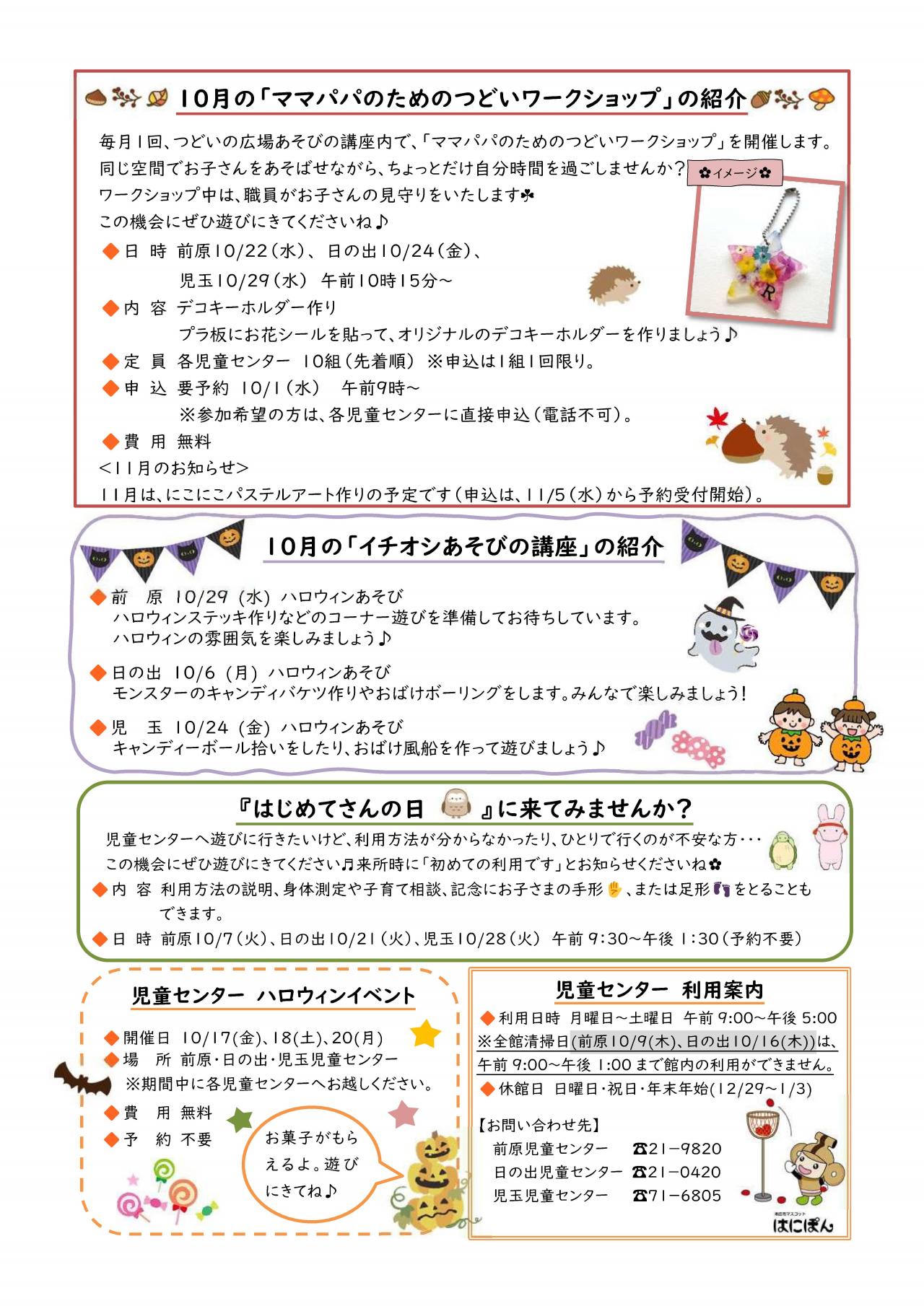詳しくは「つどいの広場だより10月号」をご覧ください。