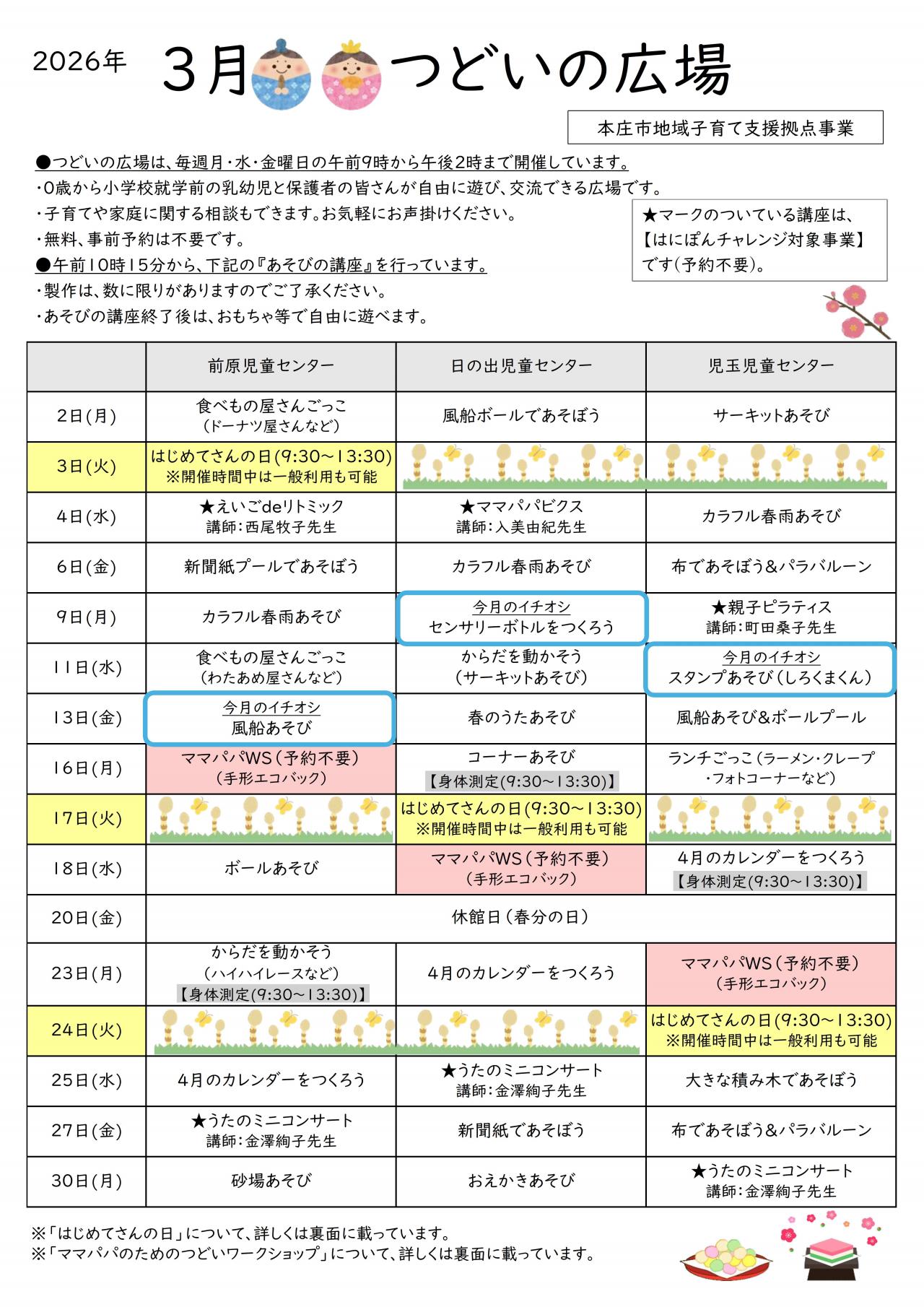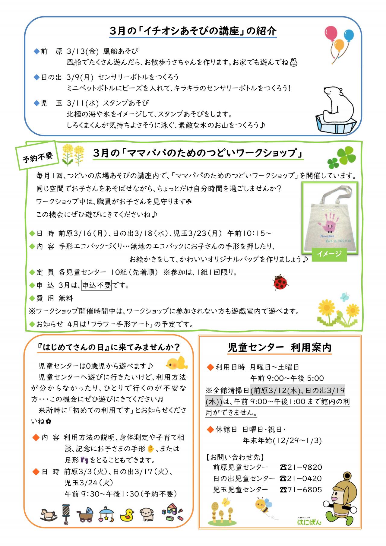 詳しくは「つどいの広場だより3月号」をご覧ください。